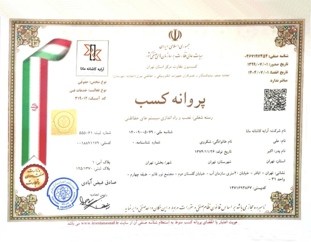 پروانه کسب آرایه کاشانه مانا